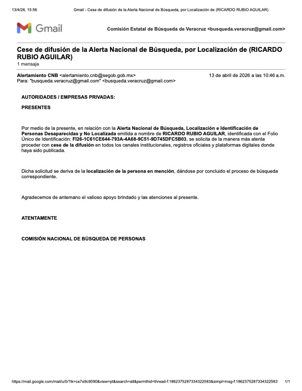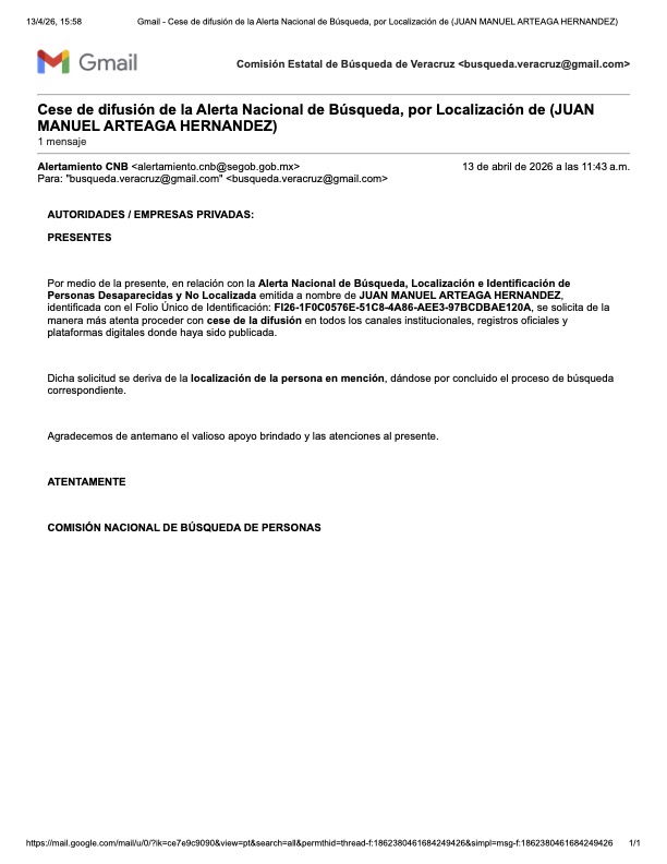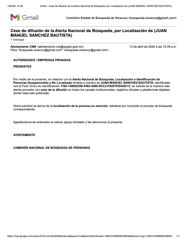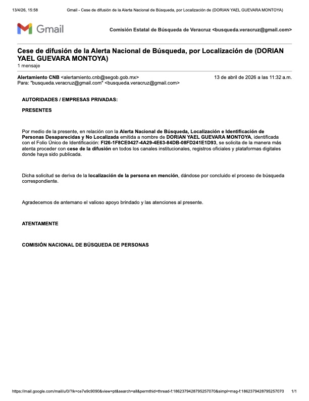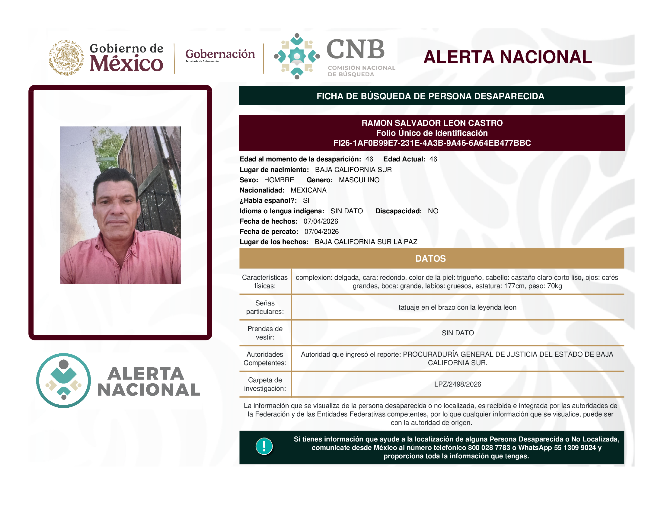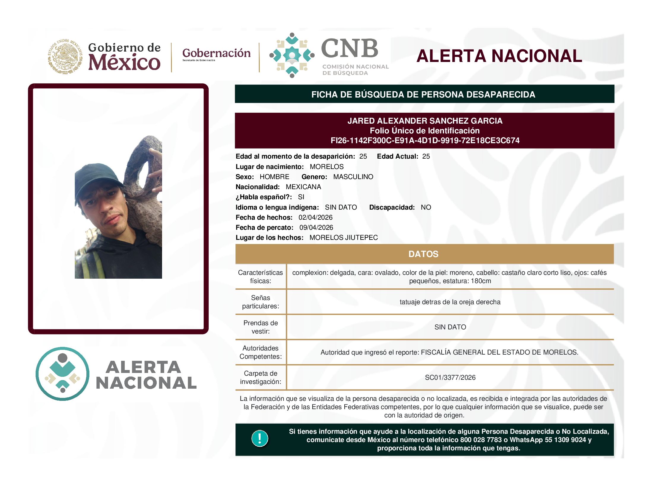 De conformidad con el Protocolo Nacional para la Activación de la Alerta Nacional de Búsqueda, Localización e Identificación de Personas Desaparecidas y No Localizadas, el cual en términos de los artículos 2 fracción I Bis y 12 Duodecies de la Ley General en Materia de Desaparición Forzada de Personas, Desaparición Cometida por Particulares y del Sistema Nacional de Búsqueda de Personas, es de observancia obligatoria para todas las autoridades y entidades de los tres niveles de gobierno, del sector privado y social en el ámbito de sus respectivas competencias legales y reglamentarias.